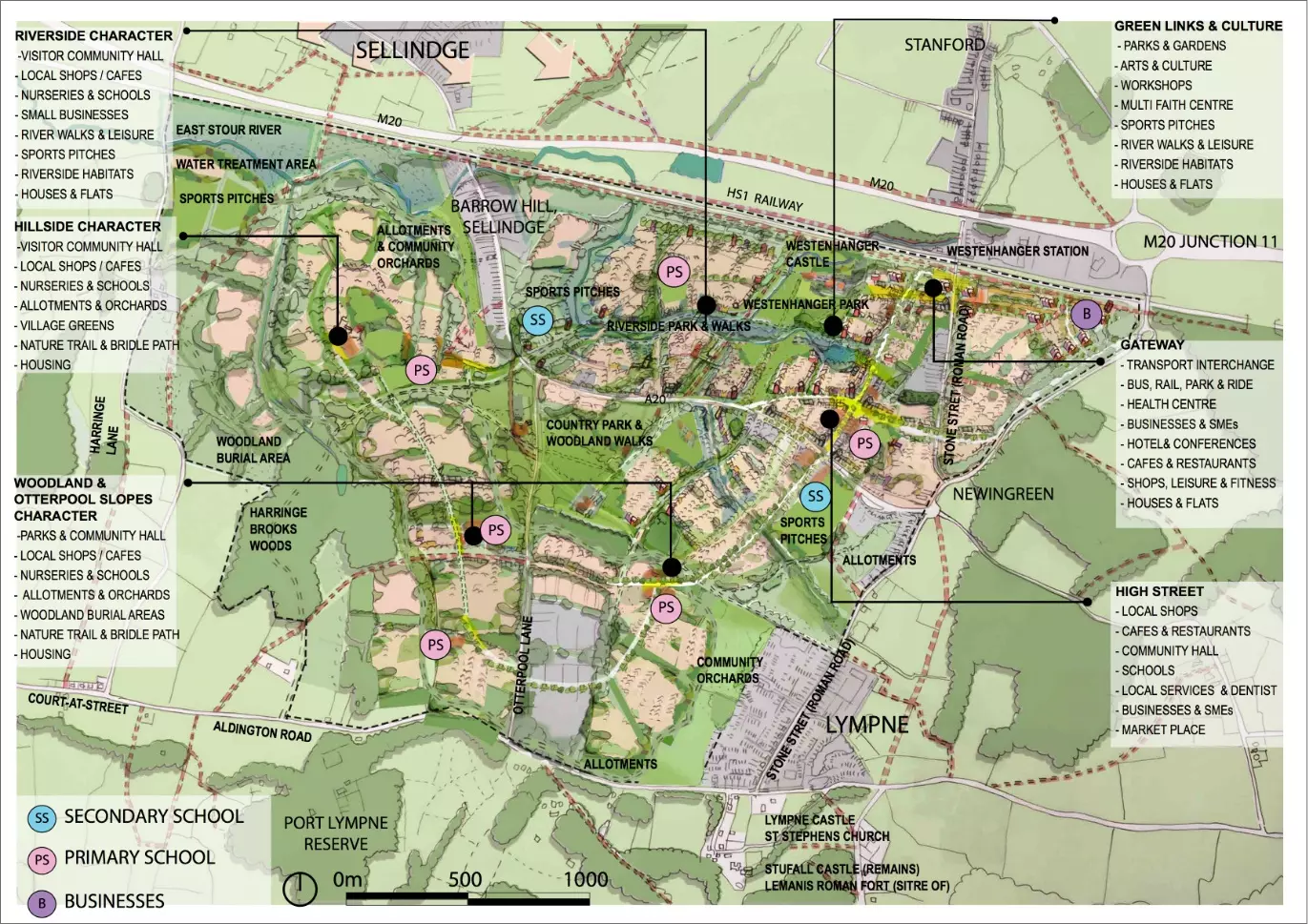 The proximity of the M20 and Westenhanger Station means the area is already well connected, not only with the rest of the district but also with the capital, the Channel Tunnel and the Port of Dover.